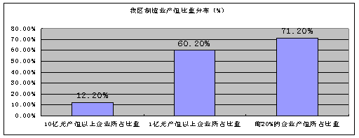 我区共有规模以上制造企业法人单位1039个,与第一次经济普查相比增加了80.8%,占全市制造业法人单位数约6%。单位平均产值规模为0.58亿元。我区10亿元以上的制造业企业法人单位有5家(鑫冶铜业(30亿元)、华普国润(17.9亿元)、华普汽车(13.5亿元)、亚泰特钢(11.4亿元),5家10亿元以上企业产值共为72.8亿元,占本区规模以上制造业产值比重为12.2%;1亿元以上的制造业企业法人单位有125家,产值为360.3亿元,占本区规模以上制造业产值比重为60.2%。20%的规模较大企业法人单位的产值合计为426亿元,占本区规模以上制造业产值比重为71.2%。