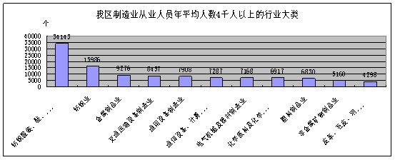 我区2008年制造业年末从业人数为140181人,占全市制造业(约368万)从业人员的3.8%。从业人员在一万以上的行业有纺织业(15986人)和纺织服装鞋帽制造业(34143万),分别占制造业年末总从业人数的11.4%和24.4%。从业人员在三千至一万人之间的有农副食品加工业(3487人),皮革毛皮羽毛(绒)及其制品业(4298人),化学原料及化学制品制造业(6917人),塑料制品业(6830人),非金属矿物制品业(5160人),金属制品业(9276人),通用设备制造业(7908)人,专业设备制造业(3816人),交通运输设备制造业(8457人),电气机械及电器制造业(7168人),通信设备、计算机及其他电子设备制造业(7287)人。