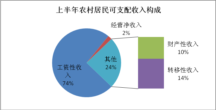 2、政策利好促进农民工资性收入强劲增长上半年,我区大力贯彻落实各项就业技能培训,深入开展三项“特别就业援助”计划,并根据市人保局有关规定上调最低工资标准以及公益型岗位从业人员收入标准,有力的政策措施保证了农村居民家庭工资性收入的强劲增长,农村居民家庭人均工资性收入增幅从年初的7.4%,至上半年达到10.0%,增幅提高了2.6个百分点,对可支配收入增长的贡献率达到69.3%。