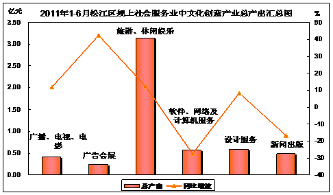 规上社会服务业中文化创意产业总产出为5.44亿元;产出平均增速为3.7%,其增速低于社会服务业平均水平17.4个百分点;利润总额为-0.24亿元,较上年同期亏损额扩大0.15亿元。