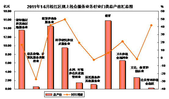 松江区统计局 2011-08-01社会服务业的统计范畴涵盖了除房产、金融、商贸、国际组织以外的其他所有第三产业行业。2011上半年我区规模以上社会服务业产出持续增长、质量稳步提高、结构积极调整,呈现健康、较快的发展态势,对全区经济平稳运行和转型发展起到了重要的保障和促进作用。
