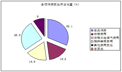 从收入看,被调查农民工人均月收入为2556.2元,收入层次分布为2000元以下的占35.9%,2000-2500元的占29.7%,2500-3000元的占17.2%,3000-3500元的占9.4%,3500元以上的占7.8%,被调查农民工月收入水平主要集中在3000元以下;从消费支出看,生活消费月支出平均额为2107.5元,其中食品占32.1%,赡养亲属占26.5%,房租水电煤气占16.9%,衣着占16.2%,其它费用占8.3%,消费以满足基本需求为主。
