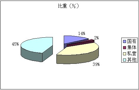 从登记注册类型看,主要有国有、集体、私营、其他(主要包括与港澳台合资、港澳台独资、外商投资等),四种单位的从业人员分别为25754人、4314人、70979人、81892人,四者的比重(%)见下图: