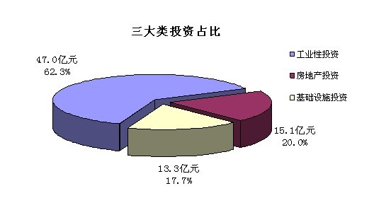 我区上半年固定资产投资实现75.4亿元,增长6.1%,增长进一步趋缓。其中,工业投入实现47.0亿元,增长1.7%;房地产投资实现15.1亿元,增长7.7%;基础设施投资实现13.3亿元,增长23.1%。虽然房地产和基础设施投资增速较快,但投资绝对额有限,促进固定资产投资较快增长仍旧取决于占主导地位的工业投入。上半年工业投入增速下降趋势明显,其下滑原因:一是去年基数较高,去年同期增速达到25.1%;二受资金、市场环境等因素的影响,项目进度较慢。