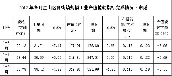 我区1-5月规模以上工业企业能源消费总量36.78万吨标煤,去年同期为38.42万吨标煤,同比下降4.28%,而1-5月份规模以上工业企业(市返)产值为317.8亿元,同比下降1.2%;产值能耗同比下降3.11%,产值能耗率的下降幅度逐月趋缓。与去年同期相比,能耗与产值均增长的企业数为224家,能耗增长产值下降的企业数为106家,能耗下降产值增长的企业数为109家,能耗与产值均下降的企业数为276家,能耗消费水平与工业经济发展速度比较匹配。