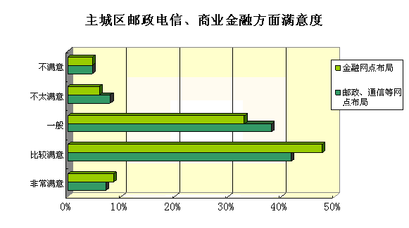 (六)、商业金融近半调查对象表示对青浦现有的金融网点布局表示满意。调查结果显示,当问及“您对青浦现有的金融网点布局是否满意”时, 60人选择非常满意,占8.52%;335人选择比较满意,占47.59%;233人选择一般,占33.1%;42人选择不太满意,占5.97%;32人选择不满意,占4.55%。