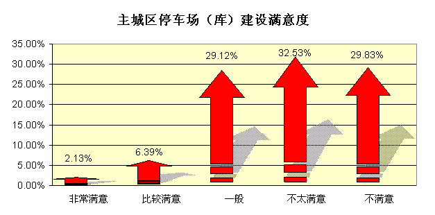(二)、道路交通1、超六成调查对象表示对青浦主城区的停车场(库)建设表示不满。调查结果显示,当问及“您对青浦主城区的停车场(库)建设是否满意”时, 210人选择不满意,占29.83%;229人选择不太满意,占32.53%;205人选择一般,占29.12%;45人选择比较满意,占6.39%;剩余15人选择非常满意,仅占2.13%。