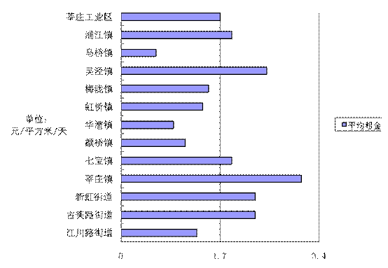 调查显示,租金收入是楼宇收入的主要来源,1-10月,全区重点商务楼宇合计租金收入达19.55亿元。全区平均租金约为1.7元/平方米/天,其中,莘庄镇的平均租金最高,为3.1元/平方米/天,其他高于全区平均水平的还有吴泾镇、古美路街道、新虹街道、七宝镇和浦江镇,分别为2.5、2.3、2.3、1.9和1.9元/平方米/天(见图2)。虹桥镇因总量基数大、高端楼宇少、偏重商业用途、第三方包租转租等原因,一定程度上平抑了租金水平;但是,虹桥镇凭借地段优势和租金价格优势,助推了该地区服务业的聚集。