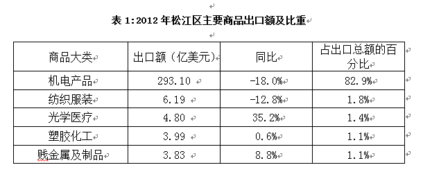 2012年,面对国内外复杂多变的经济环境,松江区出口呈现出低位的运行态势,面临多方面的困难和挑战。