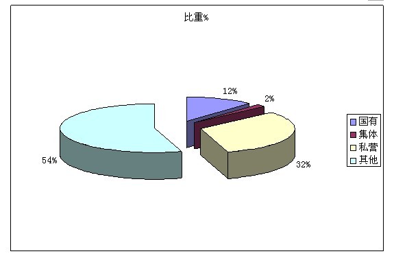 从登记注册类型看,主要有国有、集体、私营、其他(主要包括与港澳台合资、港澳台独资、外商投资等),四种单位的从业人员分别为23630人、3666人、65448人、111680人,四者的比重(%)见下图: