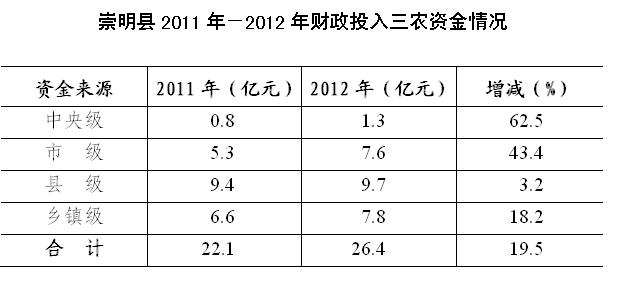 崇明县2012年“三农”资金投入增长19.5%