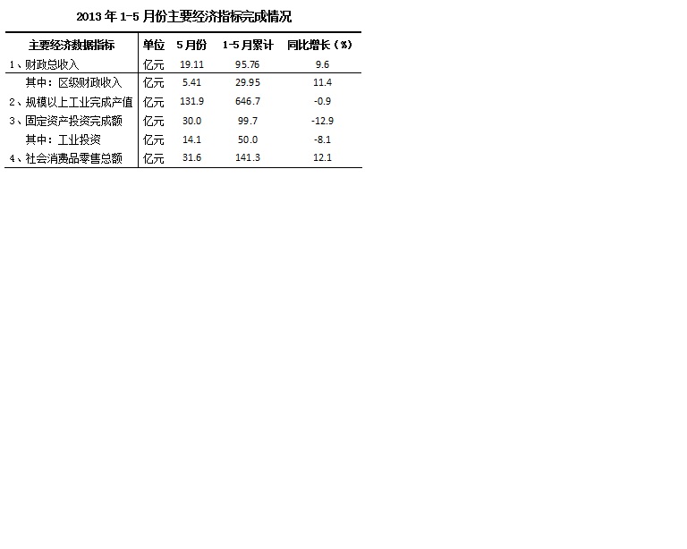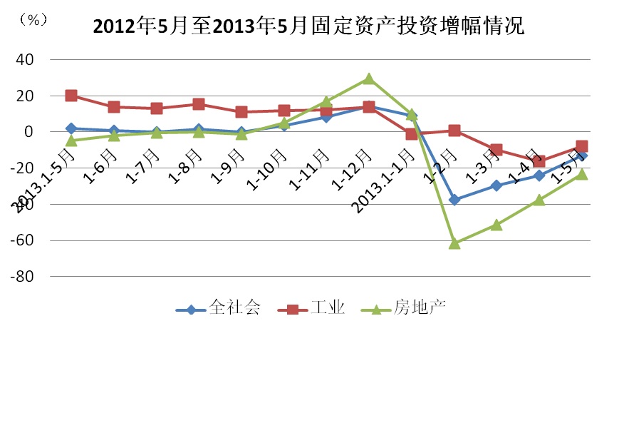 (二)固定资产投资降幅收窄,但下滑格局短期难以扭转1-5月份,全区固定资产投资完成投资99.7亿元,同比下降12.9%,比一季度降幅收窄16.7个百分点。