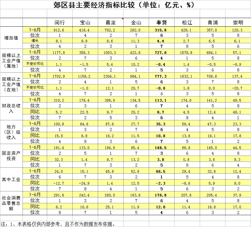 上半年度奉贤区经济运行情况分析