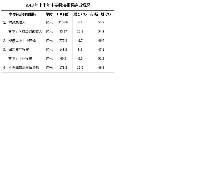 奉贤区统计局 2013-07-15在世界经济延续低速增长态势,国内经济回落底部基本形成的外部环境下,上半年我区经济运行平稳,但全面实质性的复苏仍然没有出现,经济增长缺乏后续动力。具体而言,1-6月份,我区区级财政收入保持两位数增长,工业生产低位运行,固定资产投资由负转正,消费品市场继续保持稳定。
