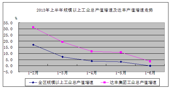 上半年,达丰电脑完成工业总产值 605.86亿元,同比增长3.5%,拉动了全区规模以上工业生产与去年同期基本持平。从上半年各月产值增速看,达丰电脑的各月增速均高于全区规模以上工业生产增速。