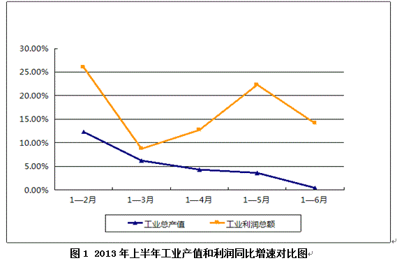 2013年1—6月,全区完成工业总产值1737.44亿元,同比增长0.4%,而同期全区工业利润为63.78亿元,同比增长14.1%,利润增速高出产值增速13.7个百分点。