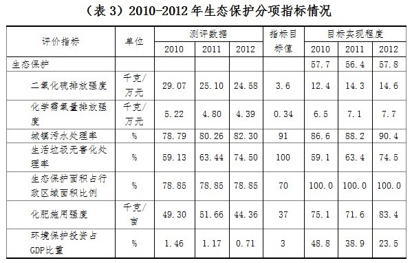 一、生态环境目标实现程度逐年提高,发展态势趋好