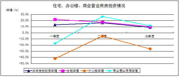 三季度房地产完成开发投资143.7亿元,比上年同期增长8.7%。从同比增幅来看,商业营业用房投资同比增幅均高于办公楼的同比增幅。尤其是二季度,商业营业用房的投资增幅达到26.50%,达到今年以来的最高涨幅。