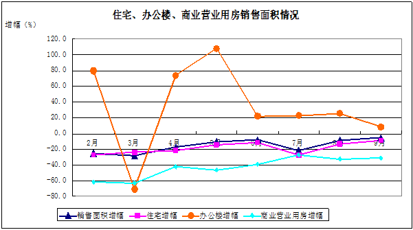 从各房屋类型来看,1-9月住宅销售价格同比增长14.7%,办公楼销售价格同比增长35.1%,商业营业用房销售价格同比增长3.0%。