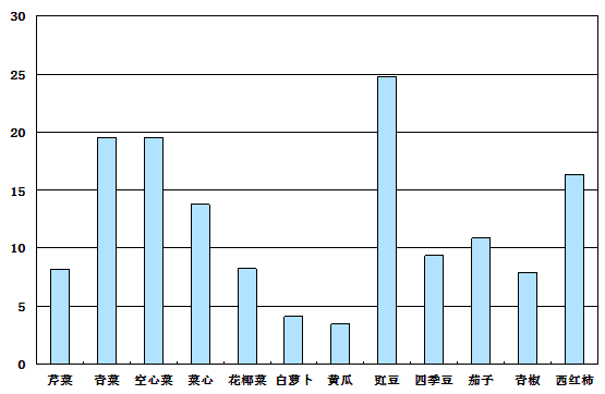 蔬菜方面,主要品种均呈现上涨态势,价格上涨受产量减少影响较大。年初并未出现灾害现象,因此生产价格保持稳定,进入夏淡时节,特别是7月-8月,持续一个多月的灾害性高温天气,7月份我区蔬菜上市量同比减少29.1%,8月份同比减少24.7%,使得蔬菜上市量大幅减少,截止至12月底,全区蔬菜上市量同比减少11.1%,产量明显下降使得蔬菜价格大幅上涨。