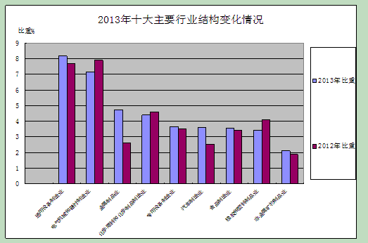 十大主要行业全年完成工业总产值3147.97亿元,同比增长0.4%,占全区比重达90.1%。其中,6大行业比重提升:通用设备制造业,金属制品业,专用设备制造业,汽车制造业,食品制造业,非金属矿物制品业比去年分别提升了0.5个百分点、2.1个百分点、0.2个百分点、1.1个百分点、0.2个百分点、0.2个百分点;4大行业地位下降:计算机、通信和其他电子设备制造业占比49.5%,比去年下降2.8个百分点,电气机械和器材制造业、化学原料和化学制品制造业、橡胶和塑料制品业比去年分别下降了0.7个百分点、0.2个百分点,0.7个百分点。可见,最大行业地位有所下降,其他行业地位相对上升,前十大行业内部结构向好调整。