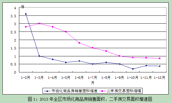 高位:从新建房市场看,2013年全区新建市场化商品房(剔除保障房,下同)销售面积138.05万平方米,比上年增长37.5%,实现新建市场化商品房销售额259.87亿元,比上年增长55.1%。从二手房市场看,根据区房产交易中心的数据,全区二手房共实现交易面积157.23万平方米,比上年增长84.9%,交易金额213.09亿元,比上年增长1倍。一、二手房交易总量持续在高位。