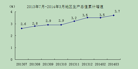 1、经济总量实现平稳增长。1-3月,全区实现地区生产总值204.15亿元,可比增长3.7%,增速环比提高0.2个百分点,继续呈平稳增长态势。(具体见下图)