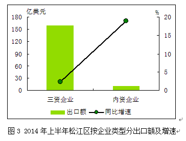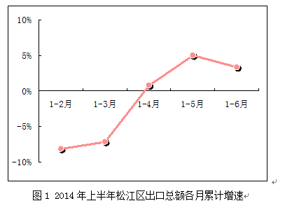 松江区统计局 2014-07-312014年上半年,受国际经济持续复苏和国内经济总体平稳的有利影响,松江出口呈现向好态势。这种向好态势主要表现在两方面,从发展外延看,增速由负转正、规模有所扩大,从发展内涵看,结构积极调整、质量稳中有升,对全区经济转型升级的贡献力得以体现。