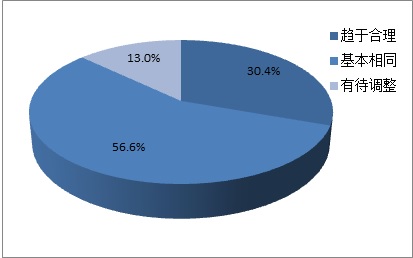 被调查276家单位中有84家企业认为当前的用工状况与去年同期相比趋于合理,仅36家企业认为用工状况与去年同期相比有待调整,156家企业认为当前的用工情况与去年同期基本相同。
