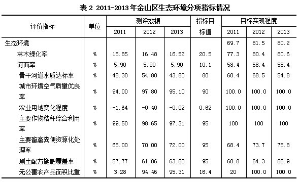 从近年来的统计监测结果看,金山区资源环境总体稳定向好,目标实现程度逐年提高。