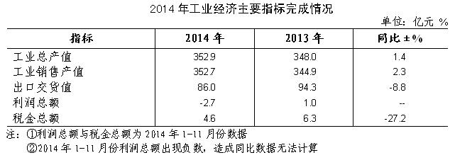 崇明区统计局 2015-01-182014年,全县工业经济上半年高开低走,三季度震荡下行,至年末明显回升,全年生产销售总值同比实现小幅增长。与此同时,海洋装备产业出现较大波动,运行风险加大,形势依旧严峻;工业企业亏损较为严重,生存面临挑战。