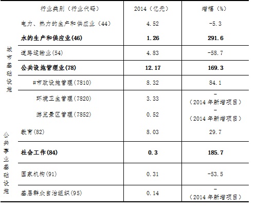 全年城市基础设施和公共事业基础设施投资分行业情况表