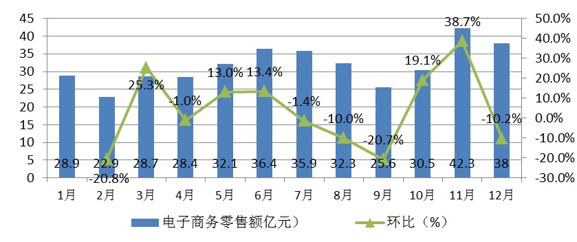 2014年电子商务零售额分月情况表