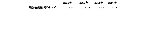 2014年当年单位增加值能耗下降5.69%,“十二五”前四年单位增加值能耗累计下降18.75%,累计完成进度119.06%,顺利完成“十二五”节能降耗目标,见表1。