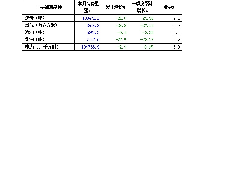 上半年,我区工业主要能源品种消费均同比下降,煤炭、燃气、柴油均二位数下降。但与一季度相比,消费量走势产生一定分歧:电力、汽油较一季度降幅继续扩大,而煤炭、燃气、柴油较一季度有所收窄回暖。