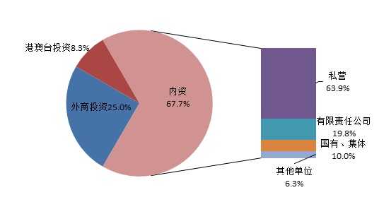 图1 2013年嘉定区二、三产业各经济类型从业人员占比情况