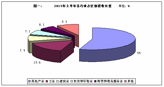 主要行业中,房地产业占55.0%;工业占15.6%;建筑业占7.9%;批发和零售业占7.1%;租赁和商务服务业占6.1%。