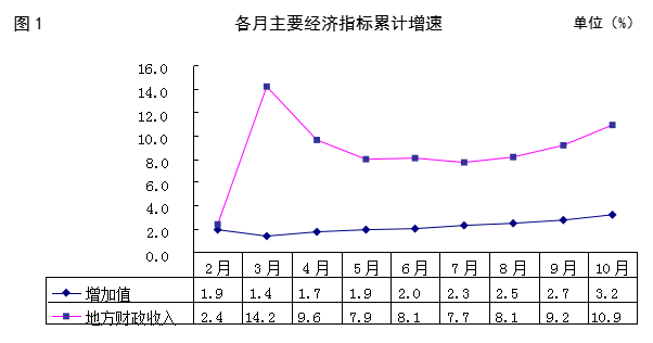 月,全区增加值、地方财政收入、社会消费品零售总额继续平稳增长,增速稳中趋升,固定资产投资增速有所回落,工业销售产值降幅进一步扩大。