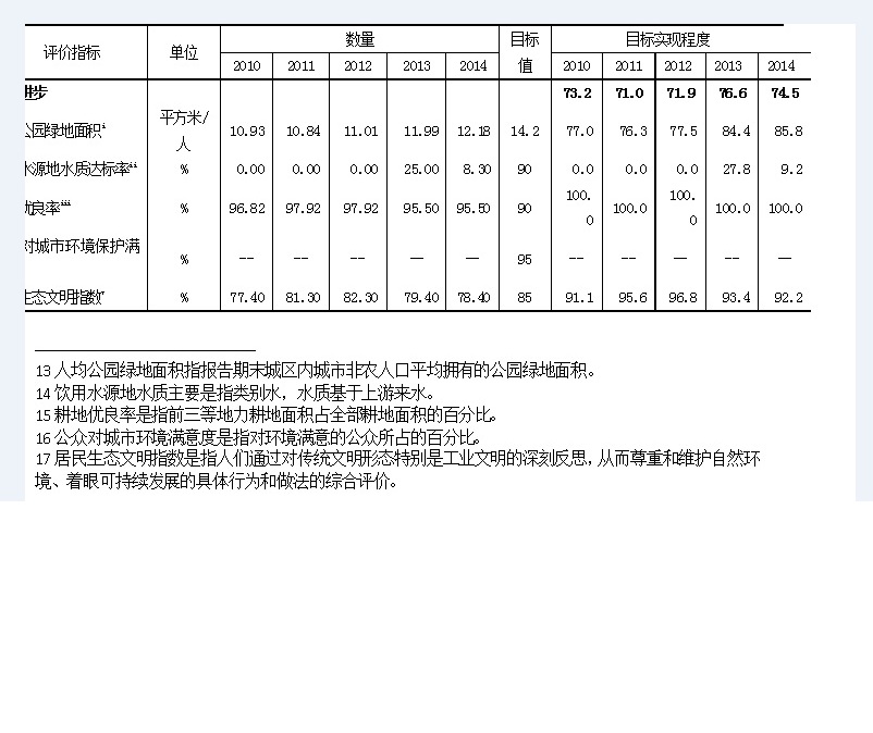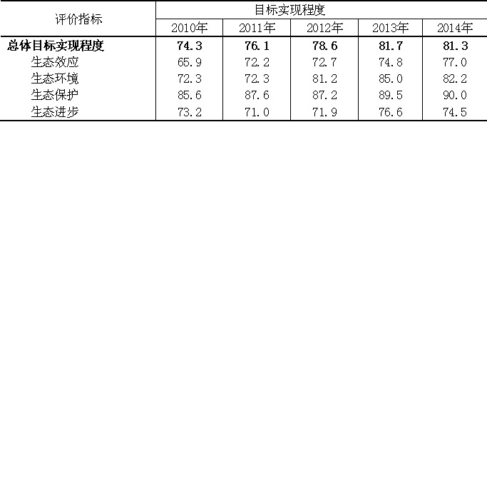 表1: 2010~2014年自然资源和生态环境目标实现程度单位:%