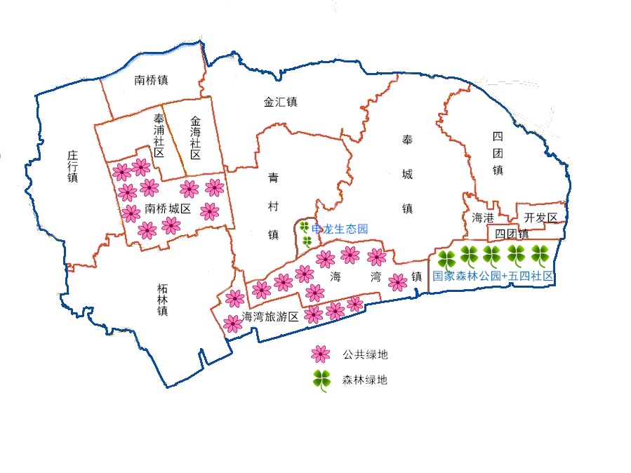 2、以建设生态型宜居城市为目标,统筹绿化发展推进公园建设和大型公共绿地建设,实现“一镇一园”全覆盖,消除绿化500米服务半径盲区。加大绿地改造力度,提高绿地景观质量,增强绿地服务功能。结合南桥新城建设、产业结构调整、新市镇建设、重大工程和基础设施建设,大力推进区域绿化建设,增加道路绿量和绿化覆盖率,使绿地系统的生态功能最大化,积极打造“生态奉贤,宜居奉贤”品牌效应。