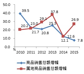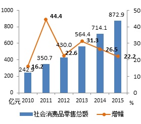 全区实现批发零售业增加值197.1亿元,可比增长15.7%。实现商品销售总额4613.0亿元,同比增长7.8%。属地商品销售总额2156.6亿元,同比增长26.9%。实现社会消费品零售额872.9亿元,同比增长22.2%。其中批发和零售业实现零售额841.7亿元,同比增长22.2%;住宿和餐饮业实现零售额31.2亿元,同比增长24.0%。全区已开业经营的6个商业综合体和1条新型商业街区共实现社会消费品零售额31.7亿元,同比增长10.8%。