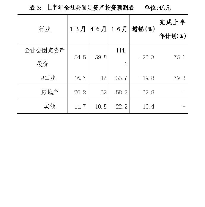 注:根据时间过半任务过半,上半年全社会固定资产投资的计划为150亿元。