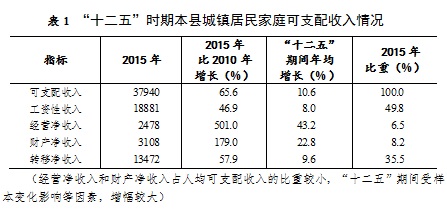 “十二五”以来,城镇居民可支配收入累计增加15025元,年均增长10.6%,城镇居民收入保持在高速增长期,期间既有亮点,也有困难和问题,主要表现为: