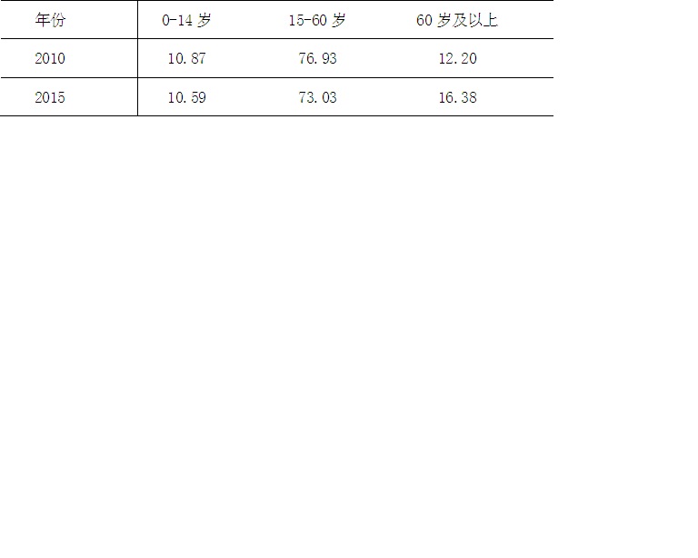 二、奉贤区人口发展中值得关注的问题1、人口老龄化进程加快,总人口抚养比居高不下调查数据显示,2015年,全区0-14岁少儿人口占调查常住人口的比重为10.59%;15-59岁劳动适龄人口比重为73.03%;60岁及以上老年人口比重为16.38%。与2010年“六普”相比,少儿人口比重和劳动适龄人口比重分别下降0.28个百分点、3.9个百分点,老龄人口比重上升了4.18个百分点。全区人口年龄结构呈现少年人口和劳动适龄人口比重下降、老龄人口比重上升的态势,说明奉贤人口老龄化程度继续提高。特别是户籍老龄化步伐进一步加快,并向纵深发展。2015年,户籍60岁及以上老年人占户籍人口比重大大上升,从2010年的21.85%上升为2015年的29.18%,高出了本区60岁及以上老年人口占常住人口比重12.8个百分点;高出了全市60岁及以上老年人口占常住人口比重9.68个百分点;同时,也大大超出了国际通用老龄化标准19.18个百分点。