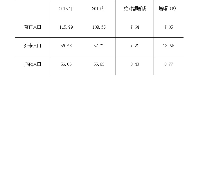 表1 2015年和2010年奉贤区人口总量单位:万人