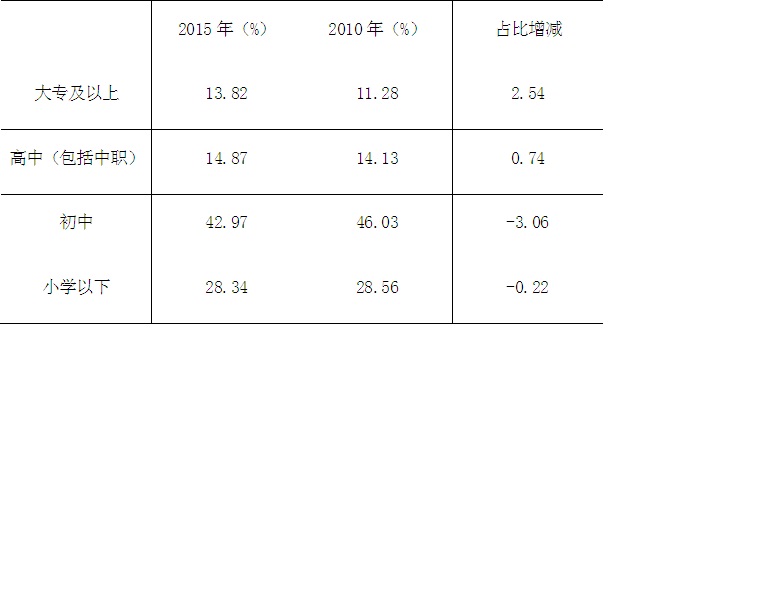表4 2015年各种受教育程度占6岁及以上常住人口比重