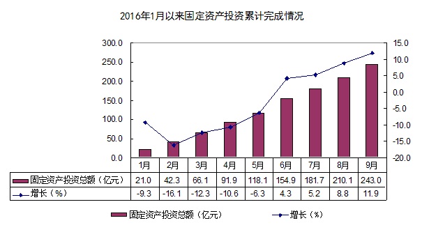 月,全区完成固定资产投资243.0亿元,同比增长11.9%,增速比上月加快3.1个百分点,比上半年加快7.6个百分点。其中,新开工项目投资额23.9亿元,增长46.3%。