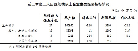 1-9月份,我县三大园区规模以上工业企业完成总产值16.3亿元,同比下降12.0%;1-8月份,我县三大园区规模以上工业企业实现利润总额0.3亿元,同比下降28.2%;园区工业运行现状不佳。
