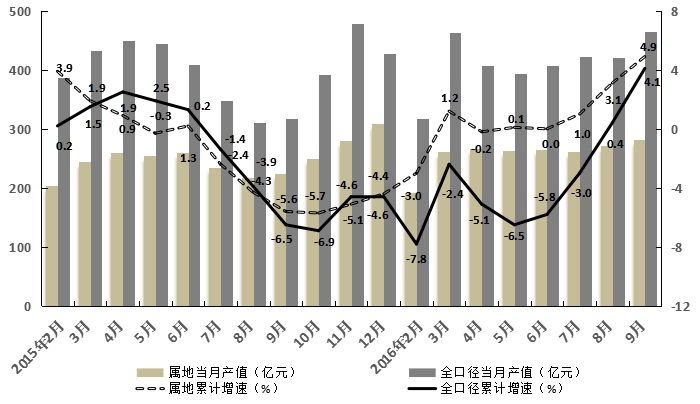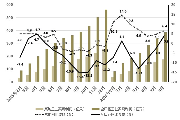 1-9月,属地规模以上工业完成产值2358.2亿元,较去年同期增长4.9%,增速是继去年6月以来的最大值;受化学原料和化学制品制造业投资收益激增的拉动,1-8月实现利润总额175.3亿元,同比增长6.4%,较上月扩大1.9个百分点。