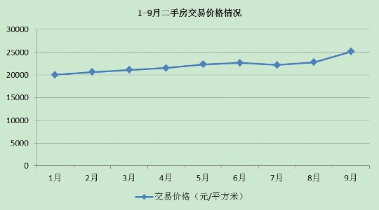 二手房交易价格继续上涨,9月房价已超过25000元/平方米以上,达到至今为止的最高价,为25146元/平方米,比去年底增长24.9%。